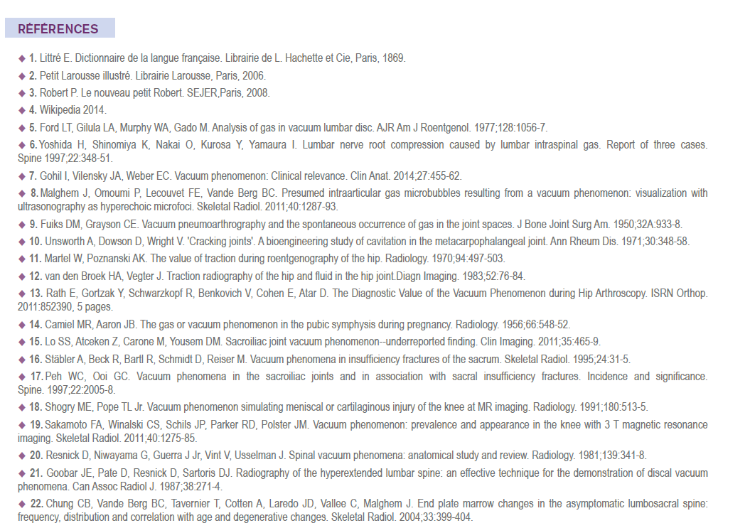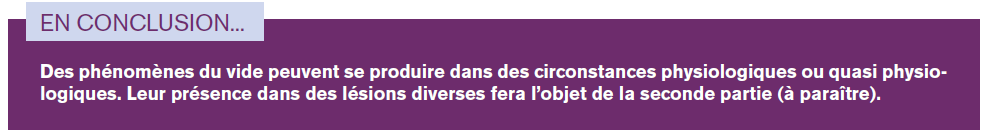 Avertissement : Dans cette première partie, seront rappelées quelques définitions et décrites quelques situations de phénomènes du vide dans des conditions physiologiques ou quasi physiologiques. La seconde partie (à paraître) portera sur des situations révélatrices de conditions pathologiques.